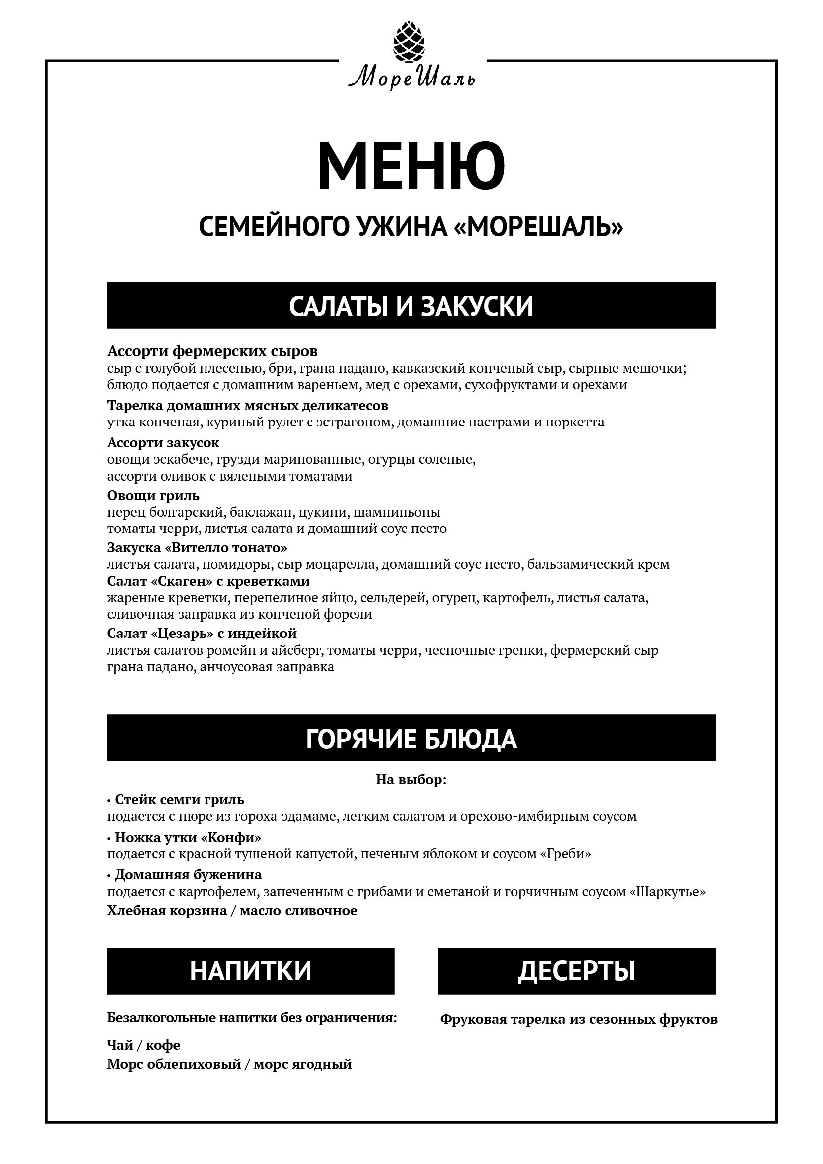 Мы начинаем знакомить Вас с ними и предлагаем вашему вниманию первый семейный ужин “МореШаль”.